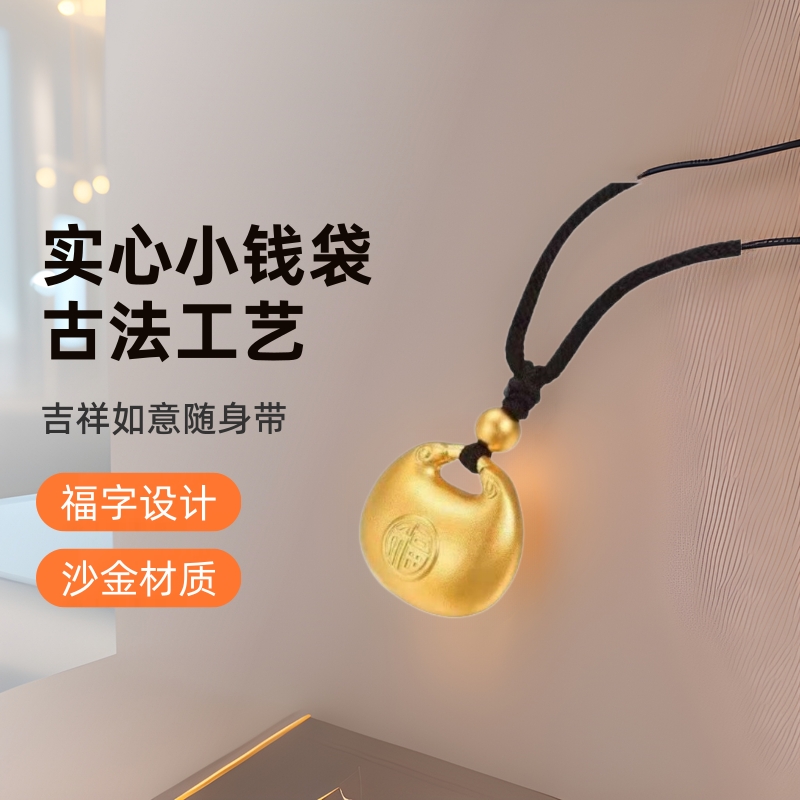 金店の同タイプの沙金小金坤ペンダント古法福字元宝ロックバッグ小太った福ペンダント女性の中実小銭袋