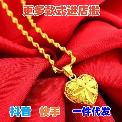 女性用サンドゴールドネックレス、ラブハート型安全バックル、四つ葉のクローバーペンダント、中空ピーチハート模造ゴールドペンダント、屋台アクセサリー卸売