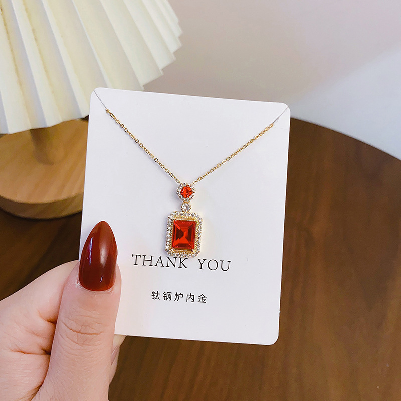 新しい正方形のジルコンの赤いペンダントのネックレスは少し愛のジルコンの鎖をはめ込んで結婚して中国式の復古風を飾ります。
