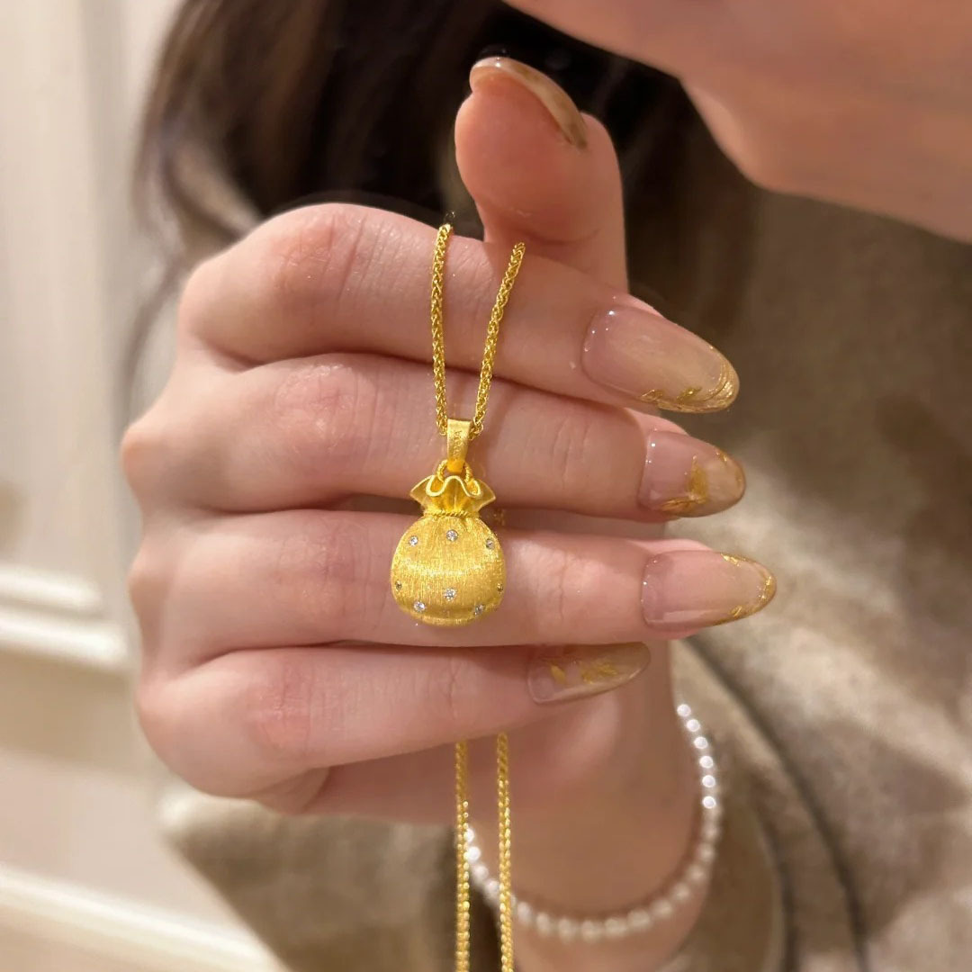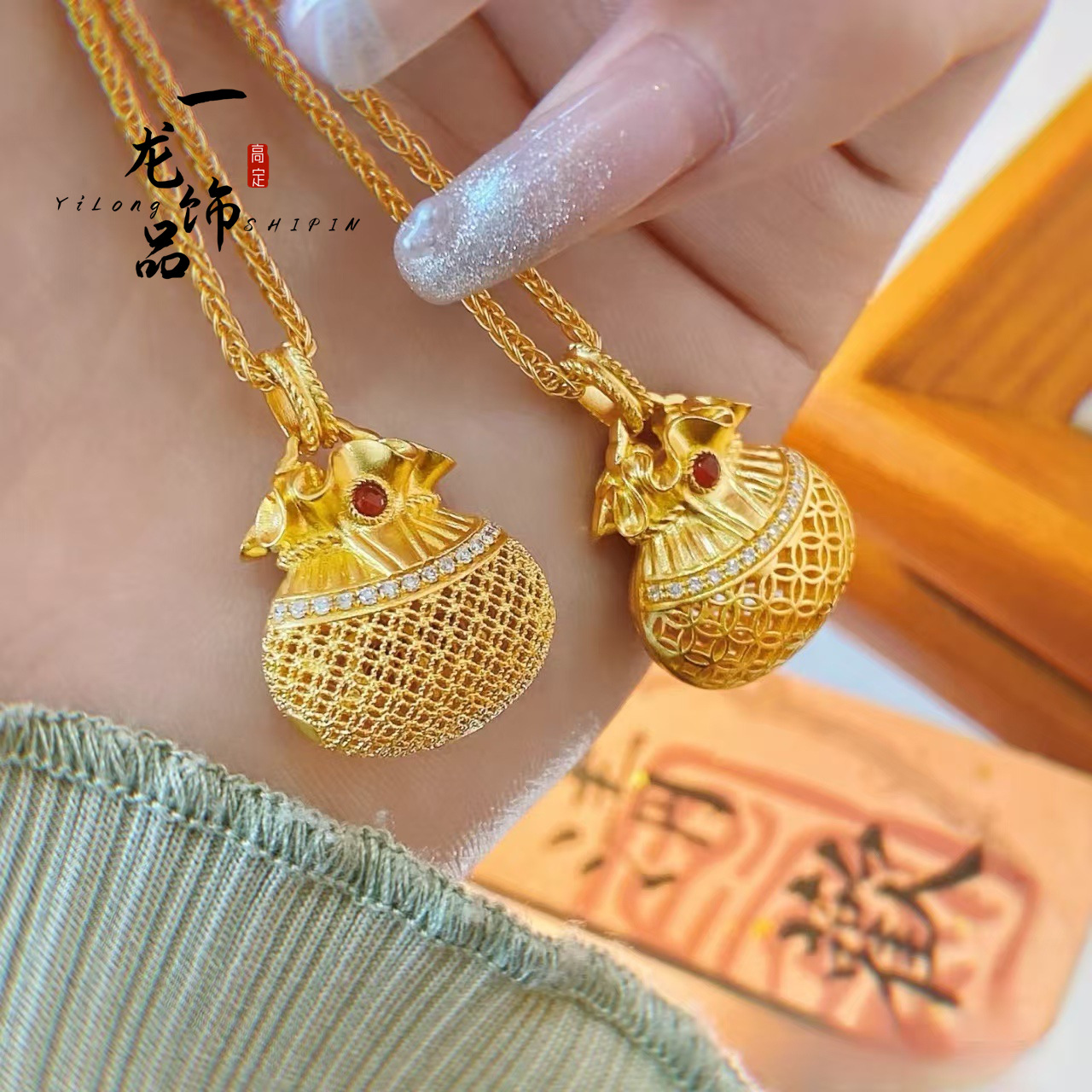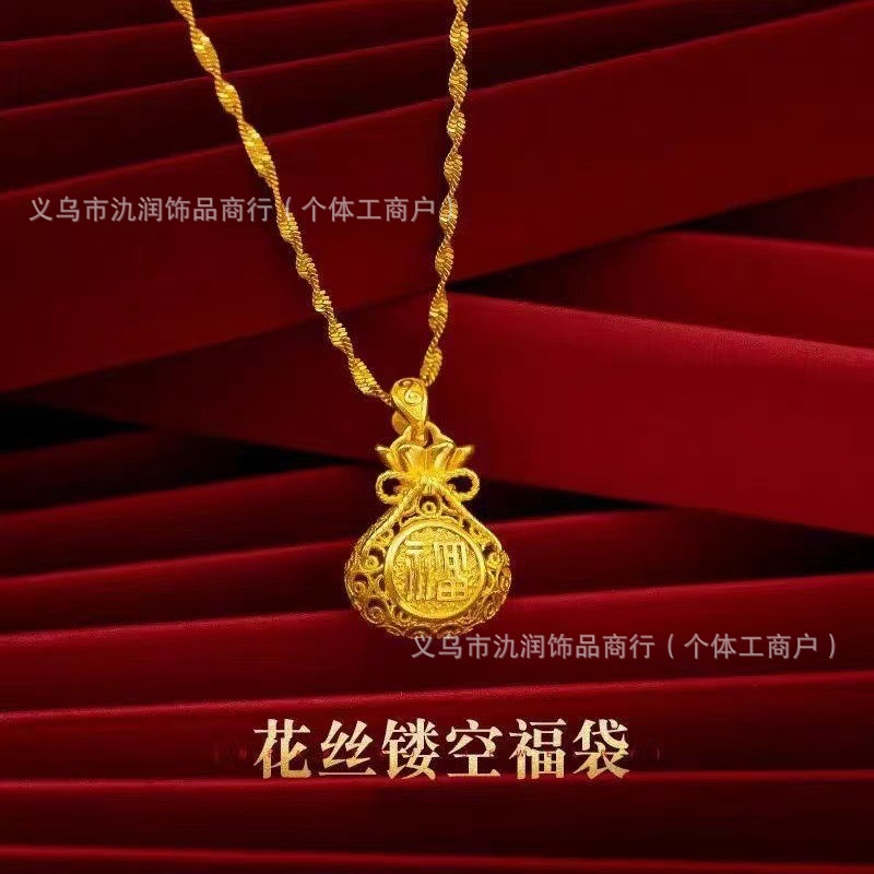 ライブブロードキャスト人気の模造サンドゴールドフィリグリー中空福袋ネックレス幸運マネーバッグペンダントレディースゴールドネックレスジュエリー