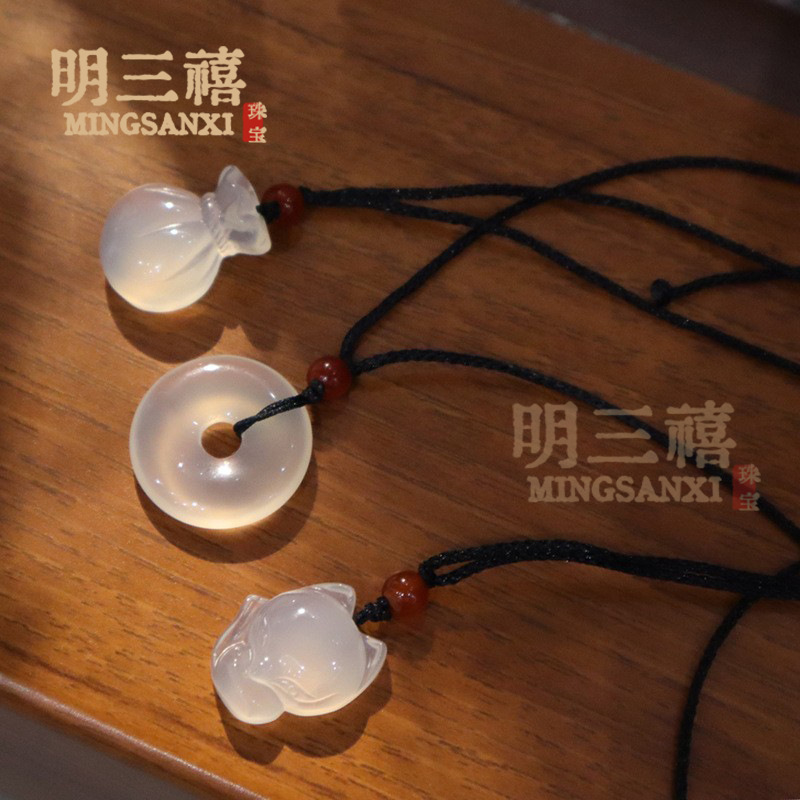 ホワイトカルセドニーペンダントハイアイスダブル貔貅安全バックル観音仏ひょうたん縁起の良い雲ロックペンダント瑪瑙翡翠ジュエリー