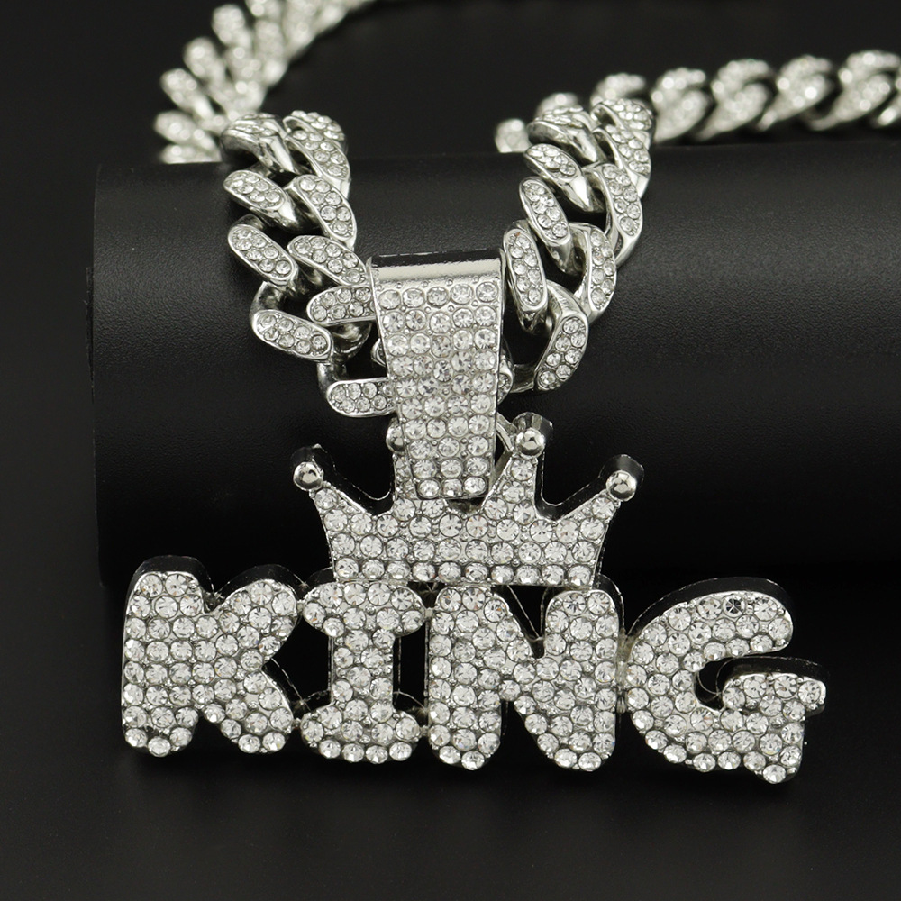 クロスボーダーフルダイヤモンドクラウンレターペンダント銅メッキ18Kリアルゴールド象嵌ジルコン英語DIYネックレスアクセサリー多用途