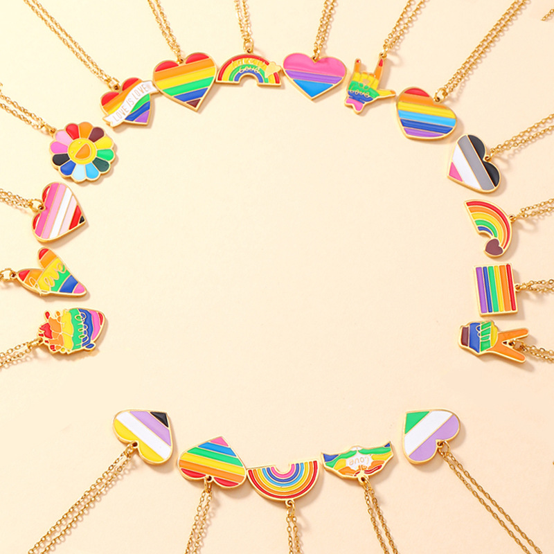 シングルペンダントクロスボーダーファッションアクセサリー滴りレインボーラブハートペンダントネックレスイヤリング手作りdiyアクセサリー