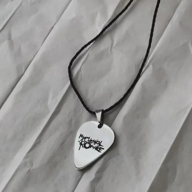 私の化学ロマンチックなロック彫刻金属ギターピックペンダントレーザー彫刻部品ペンダントネックレス