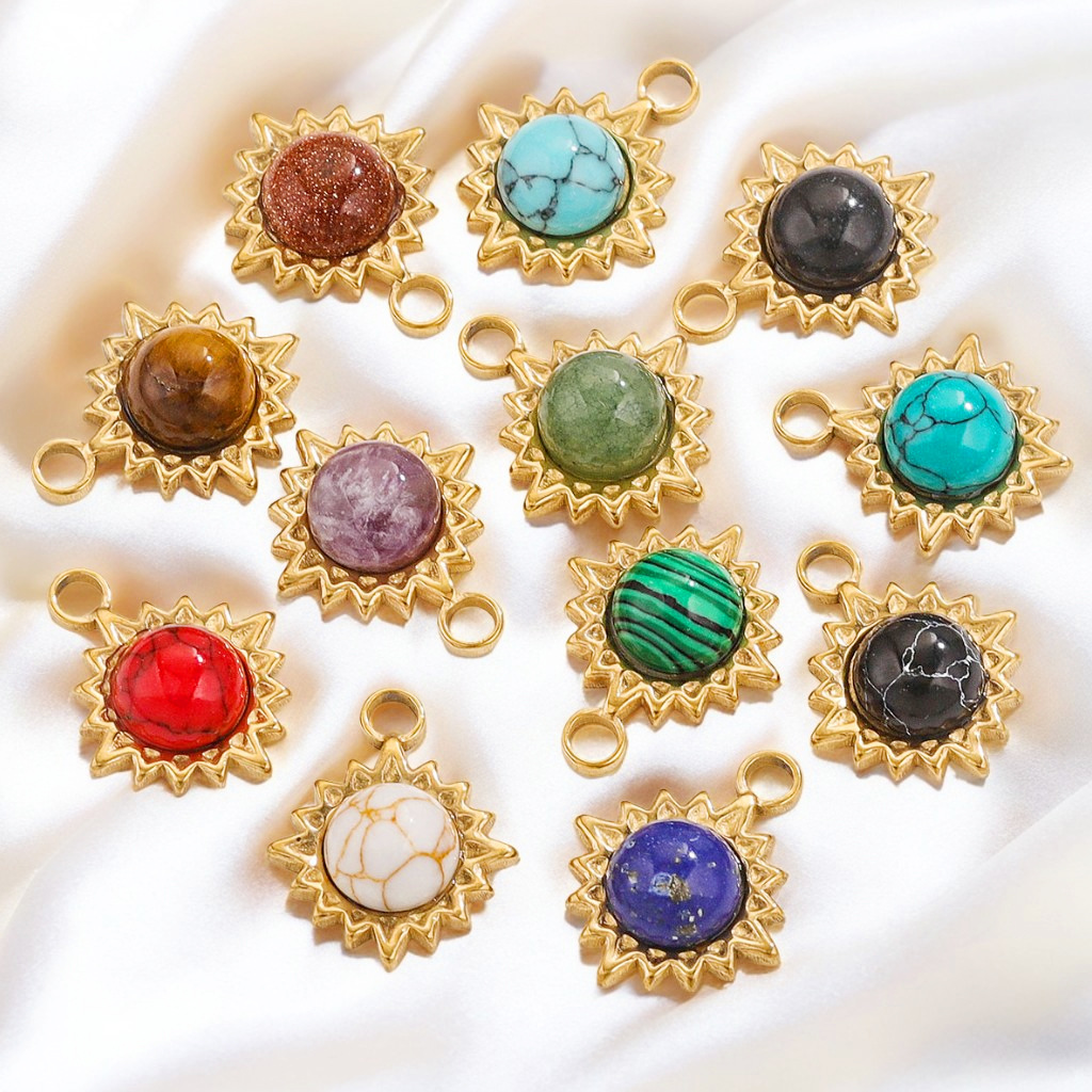 クロスボーダー新型ステンレス天然石ペンダント松石18k金メッキフランス太陽ネックレスイヤリングDIY部品