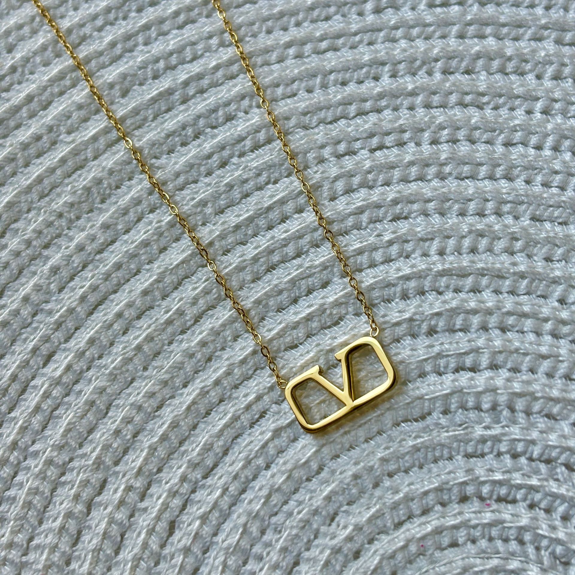 チタン鋼ブランドのv字ネックレスのアルファベットのペンダントのネックレスは高級で色が落ちません。