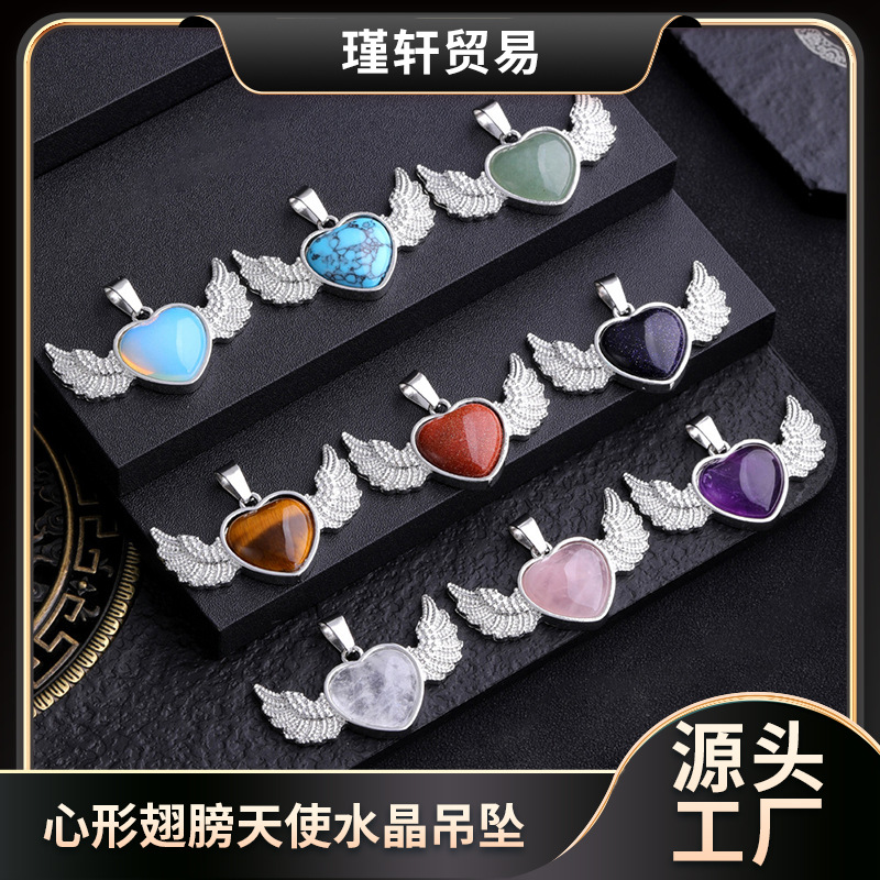 国境を越えて人気のある天然紫水晶ネックレスハート型の翼天使粉水晶ペンダントシンプルな個性的なアクセサリー卸売り