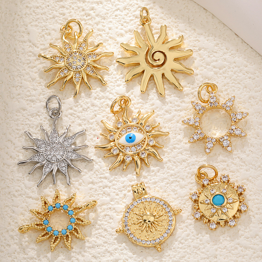 フランス風銅メッキ本金サンダストペンダントネックレスアクセサリージルコンアイDIYペンダントダブルペンダントシングルペンダントジュエリー
