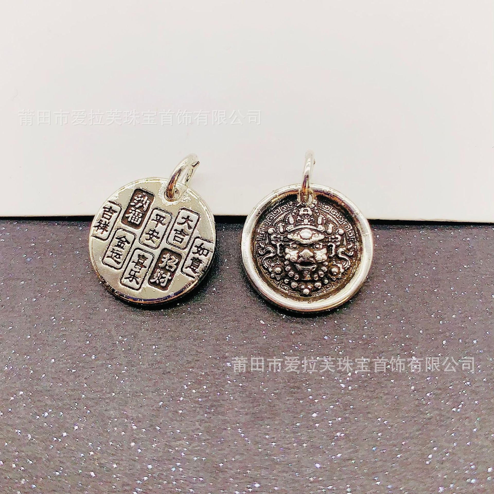 中国風吉祥円牌項ペンダント銀メッキ龍紋神獣レトロ黄財神ペンダント手作りアクセサリー部品卸売り