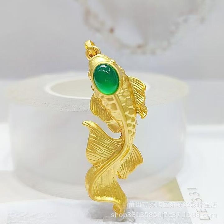 古法金は玉髄をはめ込んで、年に魚のペンダントがあります。