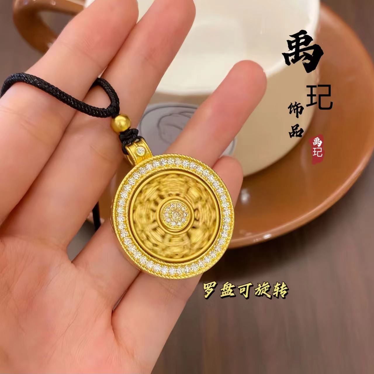 ベトナムの砂金に八宝のコンパスを入れて、回転ペンダントができます。