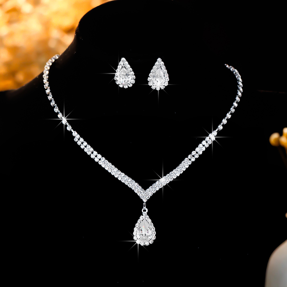国境を越えた供給ホット販売外国貿易ジュエリーペンダントフルダイヤモンド幾何学的なジルコンネックレスイヤリングセットチェーンウェディングジュエリーセット