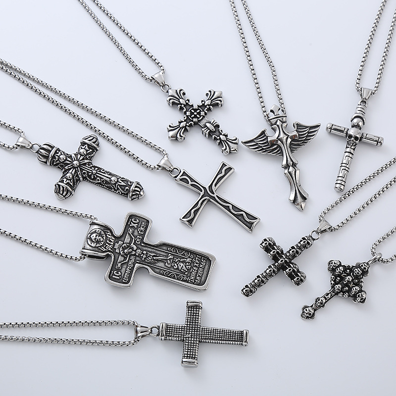 レトロクラシッククロスネックレスクロスボーダーホットヨーロッパとアメリカのパンクヒップホップトレンディなカップルネックレスジュエリーセットアクセサリー