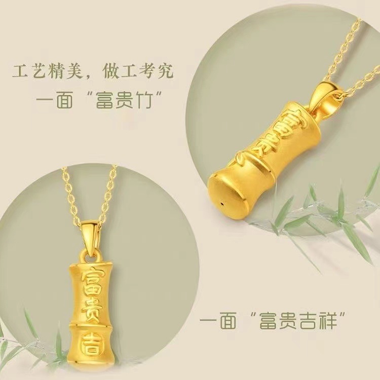 古法金保色竹節通孔ダンジョンペンダント中国風節高昇竹diyアクセサリー部品
