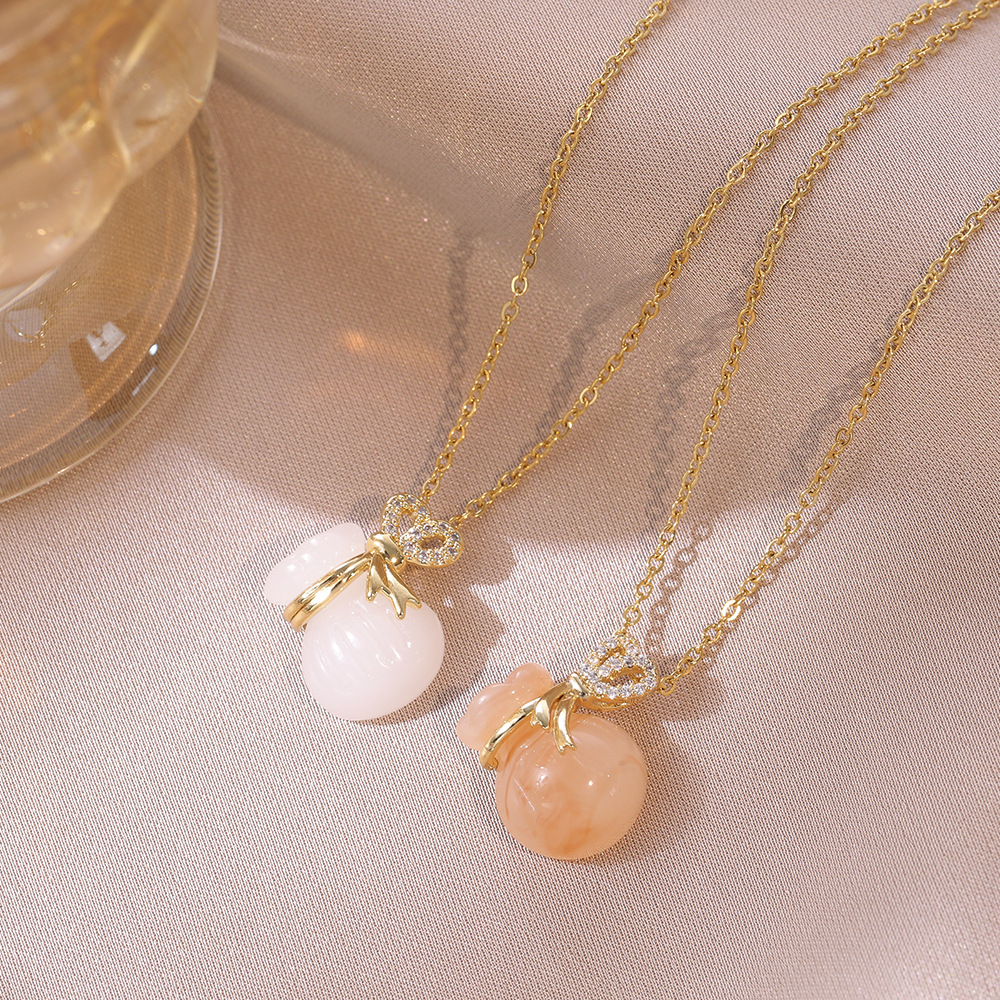 レディースチタニウムスチールネックレス銅メッキ真金ペンダントピンク猫目石銭袋ネックレス18kゴールド色落ちせず高級感