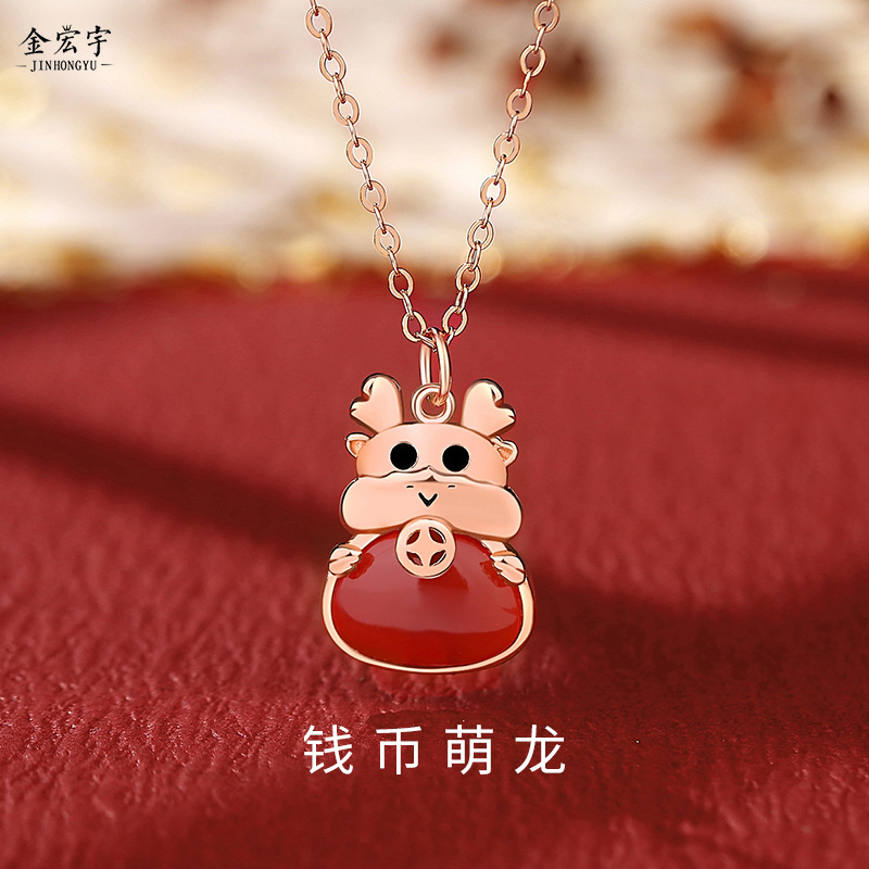 オリジナルのコイン萌え龍ネックレス女純銀国潮本命年紅瑪瑙ペンダント生肖龍年銭袋鎖