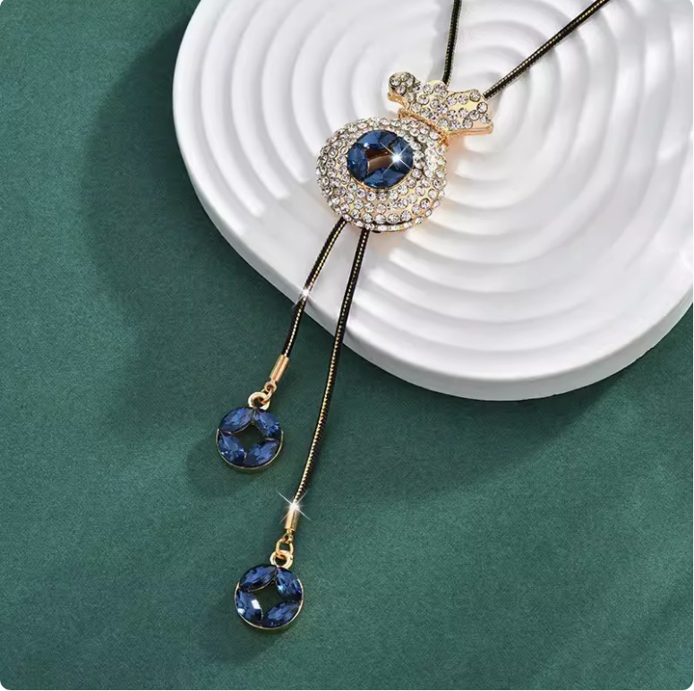 祝福のお金袋、ダイヤモンドがちりばめられたネックレス、セーターチェーン、韓国風ロングネックレス、ファッショナブルで多用途なアクセサリー、女性用高級感、卸売