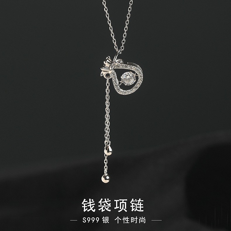 s925 スターリングシルバーマネーバッグモアッサナイトネックレスニッチスマート脳卒中福袋モアッサナイト鎖骨チェーンクロスボーダー卸売