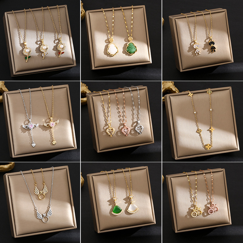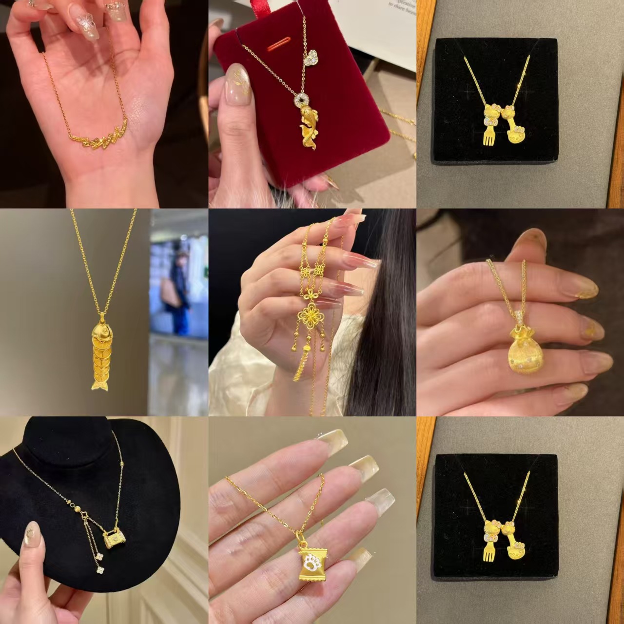 爆発金ベトナム沙金福袋富貴花ペンダント鎖骨鎖愛薔薇ネックレス銅金メッキ幸運草ネックレス