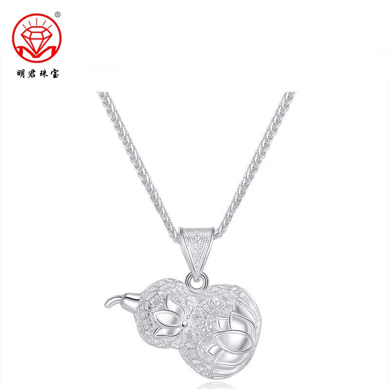 足銀999花糸透かし彫り福字ひょうたんペンダント女性国風福禄絞め糸純銀銭袋ペンダント直播金