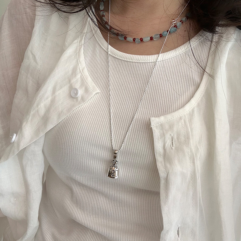 S925銀新中国式米多銭袋ネックレス女子国潮古風銭貨ペンダント福字鎖骨チェーンアクセサリー