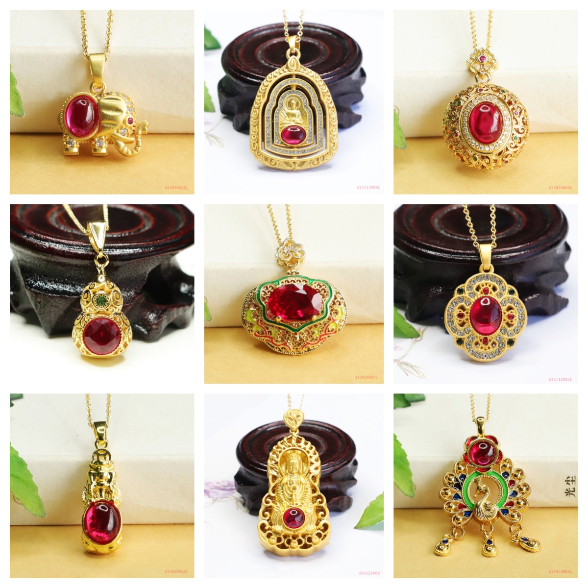 愛钰育成ルビーペンダント赤コランダム福象ネックレス復古ジュエリー卸売り代発AY4050822L