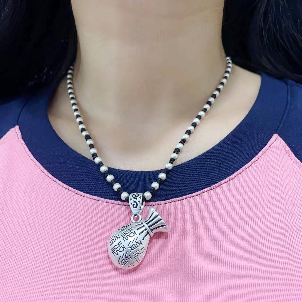 翔福袋銭袋ペンダントレトロ編み紐水晶鎖骨ネックレスワックス銀飾りメーカー直販