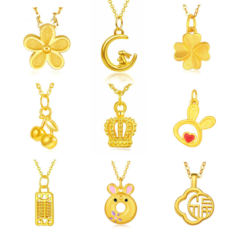 ゴールドネックレス足金999透かし彫りクラウンペンダント3d硬金四葉草ペンダントネックレス生放送お土産