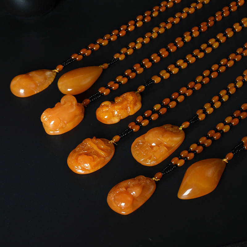 証明書付き天然古い蜜蝋龍と鳳凰ブランドペンダントレディースネックレス無事ブランド琥珀牡丹貔貅セーターチェーンカップル