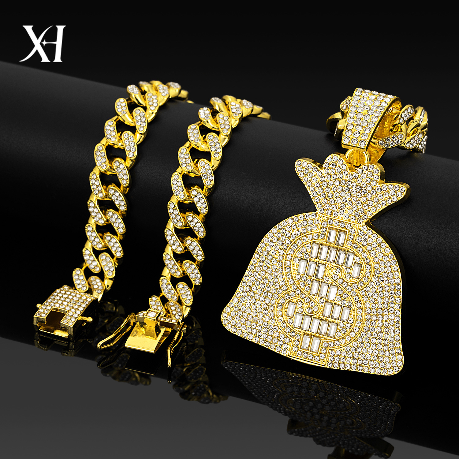 二層メッシュカバーラダーダイヤモンド合金ヒップホップビッグマネーバッグペンダントネックレスヨーロッパとアメリカンスタイルのキューバチェーンジュエリー男性と女性用
