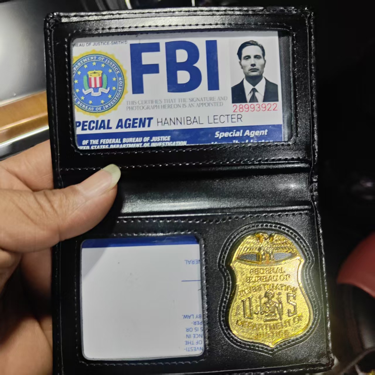 金属バッジには黒い革の革のカバーが埋め込まれています。