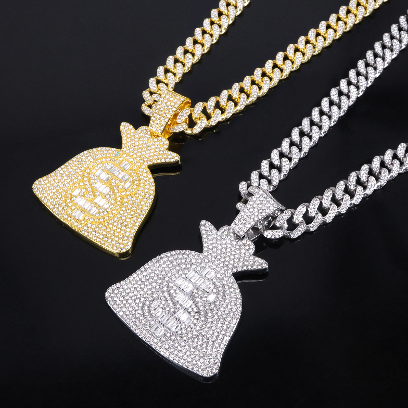 合金のネックレス欧米の男性の女性の潮流の大きいお金の袋のペンダントのヒップホップの個性のファッションのラップはダイヤモンドのペンダントを入れます。