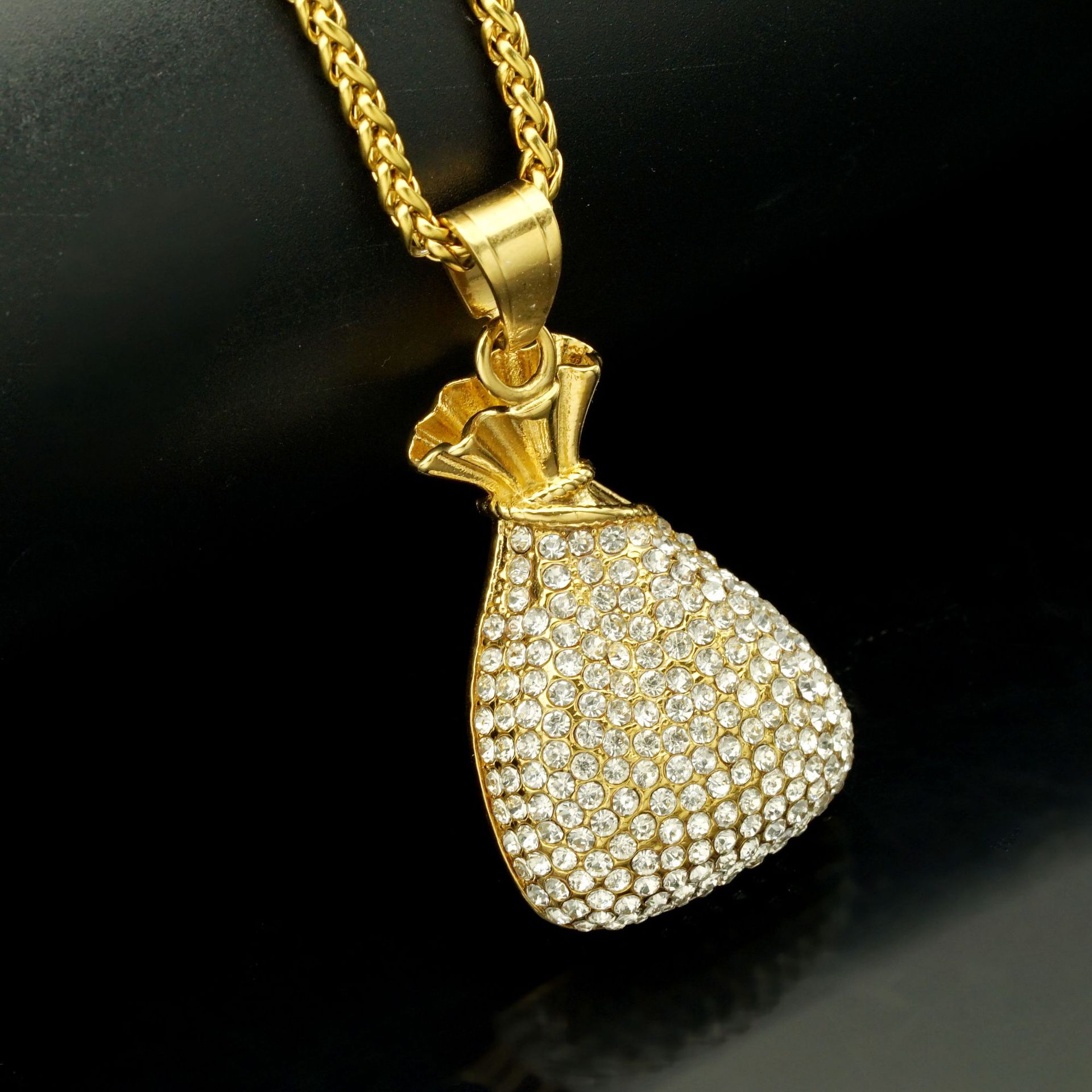 ヨーロッパとアメリカの貿易人気ヒップホップスタイルヒップホップ金メッキダイヤモンドチタン鋼/ステンレス鋼ドルフルダイヤモンドマネーバッグペンダント