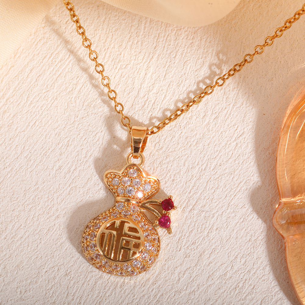 ネックレスの女性の福の字のお金の袋のファッション的な国風の気質のジルコンは透かし彫りの福袋をはめ込んで鎖のチェーンのアクセサリの卸売りをします。