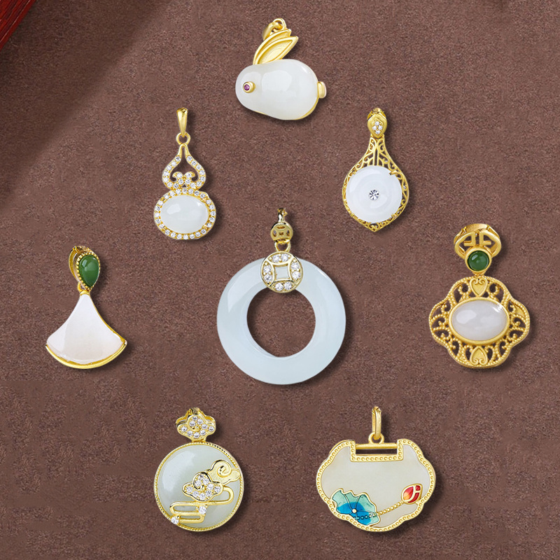 S925純銀モザイク天然和田玉ペンダント国潮宮廷ファッション風玉ネックレス生放送卸売り