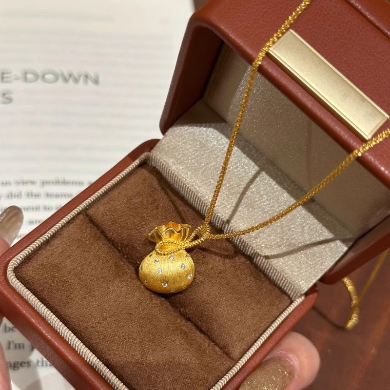 ゴールドストアと同じスタイルのサンドゴールドの小さなお金袋ネックレス、小さな太った幸運の金塊ペンダントロックバッグネックレス、女性用