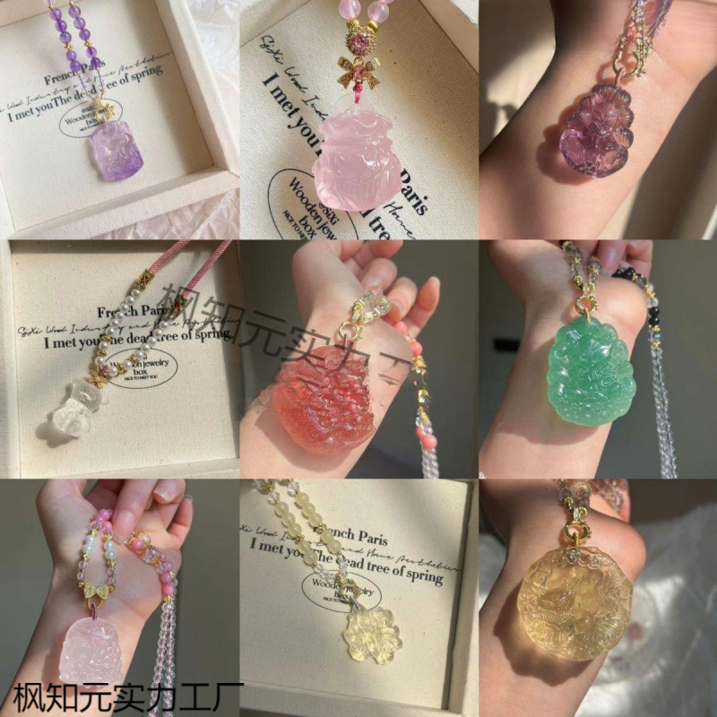 天然水晶九尾狐彫刻幽霊発晶粉水晶紫水晶花桃花ペンダント