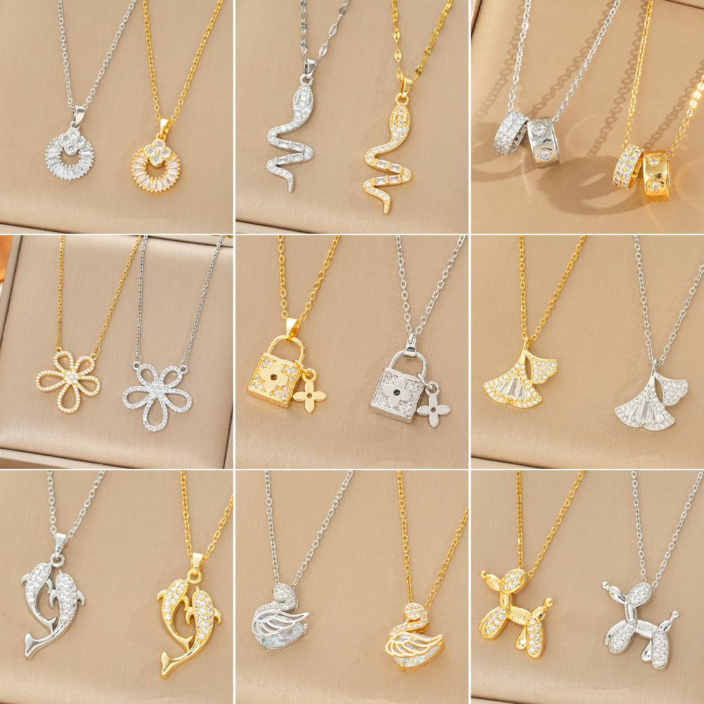韓国版チタン鋼バラ金四葉草両面ネックレス女性鎖骨チェーンアクセサリー代理店出店商品ソース卸売り