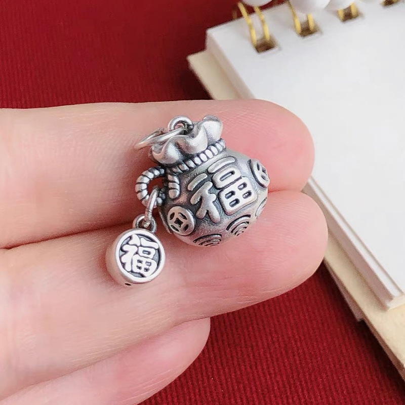 ペンダント福袋銀銭袋ペンダントネックレスカップル中空福袋ネックレス銀銭袋銀アクセサリー