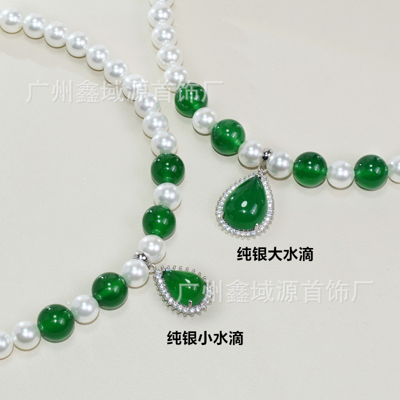 全体 S925 スターリングシルバー天然クリソプレーズ仏陀マネーバッグウォータードロップマザーオブパールネックレス鎖骨チェーンハイエンド