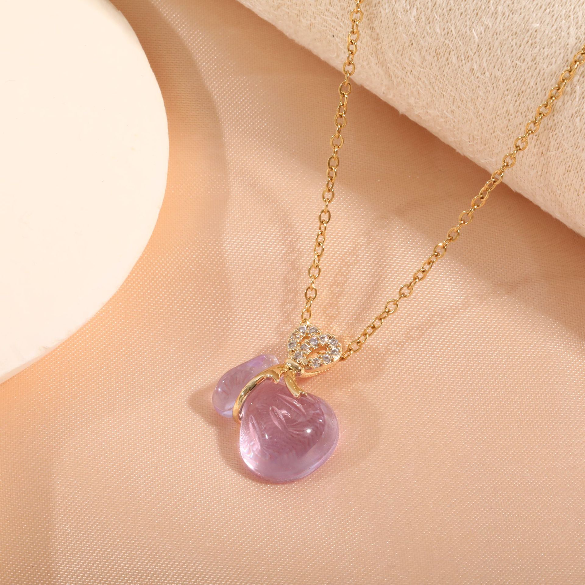 軽豪華風天然石紫福袋ペンダント爆金招財銭袋が色落ちしないチタン鋼ネックレス百合気質