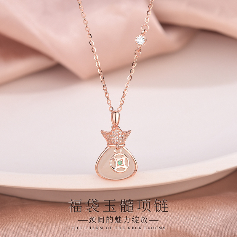 S925純銀白玉髄福袋ネックレス女銭袋玉ペンダント