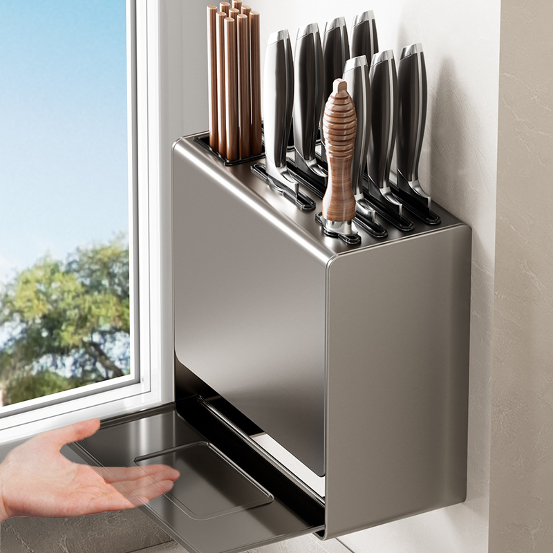 億米佳銃灰刀架物棚多機能箸筒厨房台上包丁棚箸籠一体収納ケース