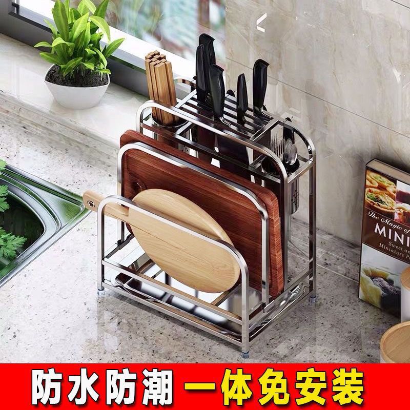 304ステンレス刃物棚菜板棚一体箸筒刀ホルダー収納棚台所棚多機能