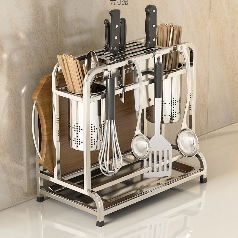 304ステンレス刃物台菜板棚一体箸筒刀座具収納棚多機能厨房物置棚