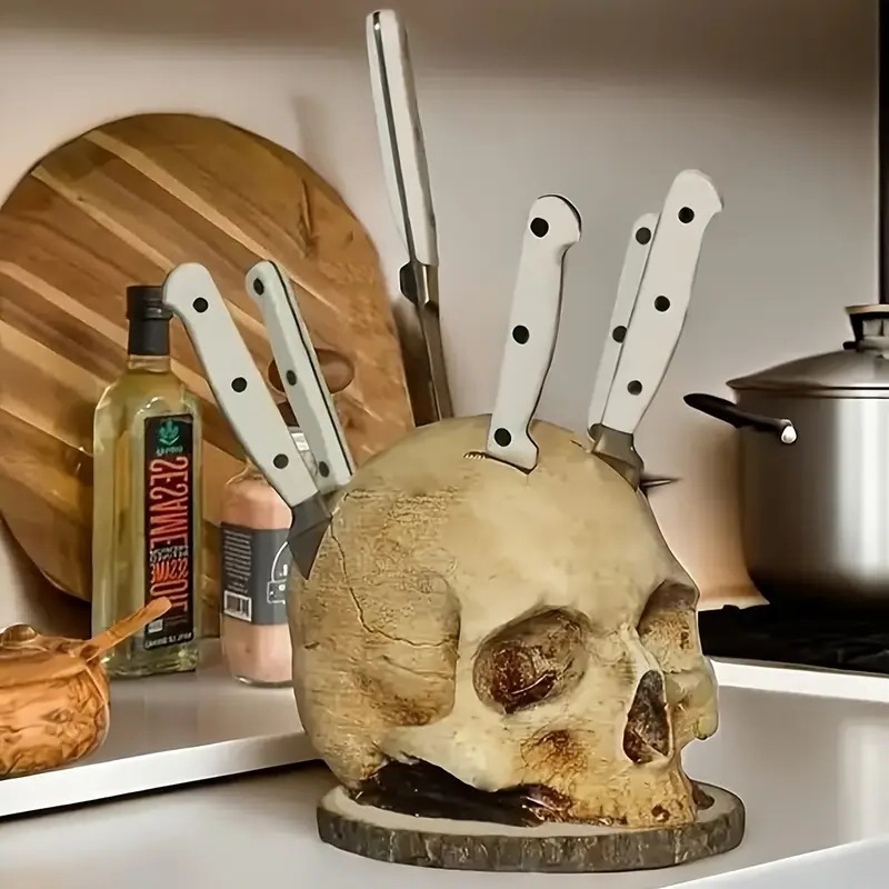 創意的な台所の棚の台所のスカルの刀の棚のスカルの装飾の祝日のホラーの雰囲気のデスクトップの装飾品の置物