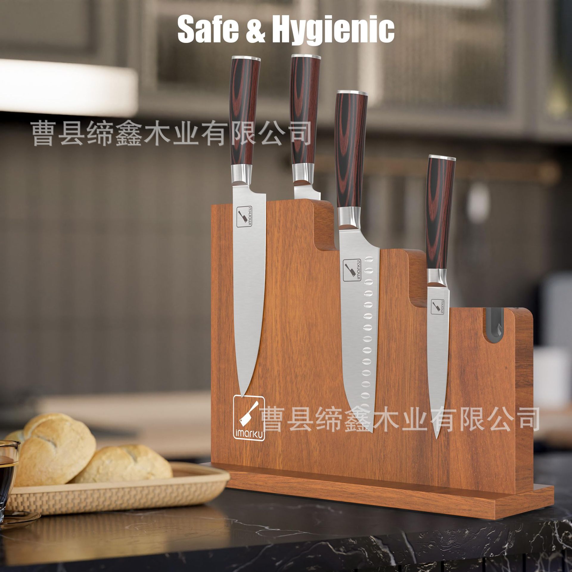 木製ナイフホルダー、家庭用包丁収納および整理ラック、ショッピングモールナイフディスプレイスタンド、両面磁気吸引ラック