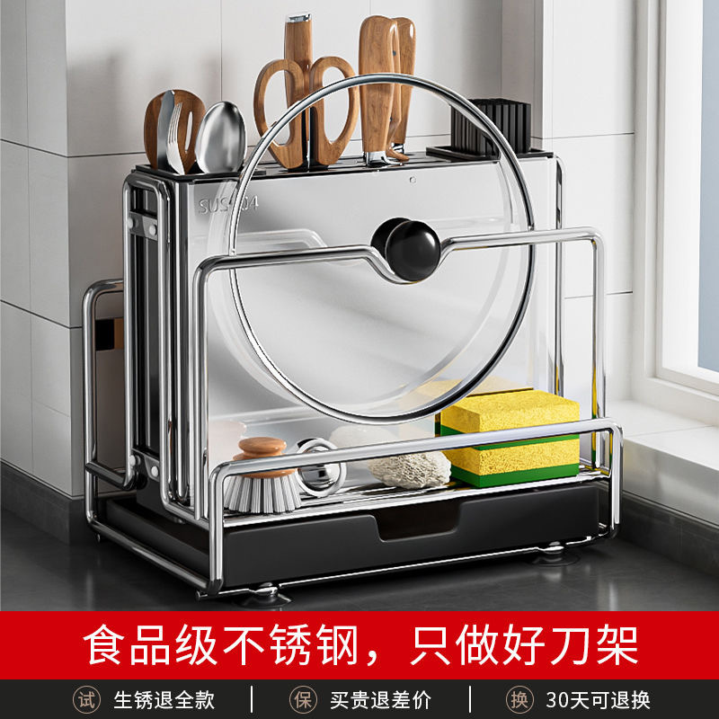 304 ステンレス鋼のナイフホルダー収納ラック 2025 新しい包丁まな板鍋蓋一体型ナイフボウルと箸収納ラック