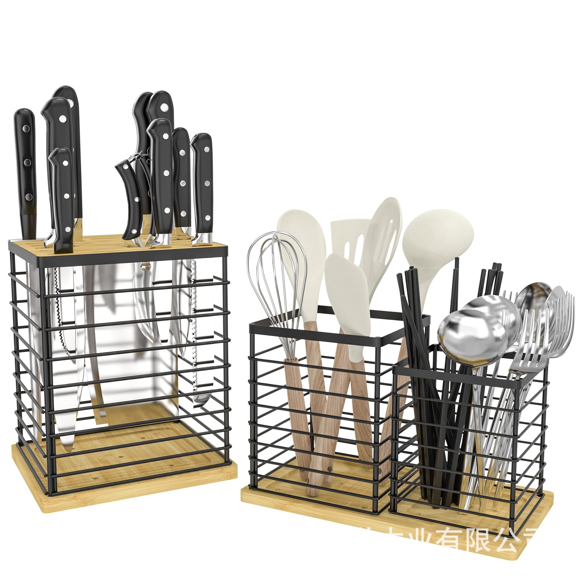 鉄と木材を組み合わせたナイフホルダーキッチン包丁器具ホルダーキッチン多機能ナイフホルダー食器スロット調理器具ナイフホルダー