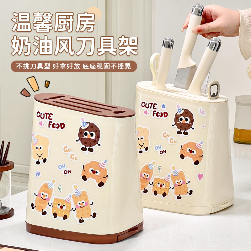 クリームスタイルの家庭用包丁ホルダー収納ラックカウンタートップモデル無料 DIY 包丁ホルダー収納ラック収納ボックス